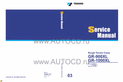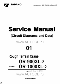 Заводская инструкция по ремонту крана Тадано - Tadano Rough Terrain Crane GR-900XL-2, GR-1000XL-2 содержит подробную информацию о сборке и разборке агрегатов, процедур диагностики, электрические схемы, моменты затяжек и др.