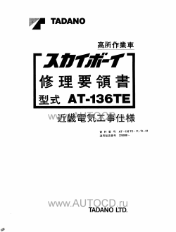 Заводская инструкция по ремонту крана Тадано - Tadano Aerial Platform AT-136TE-1 содержит подробную информацию о сборке и разборке агрегатов, процедур диагностики, электрические схемы, моменты затяжек и др.