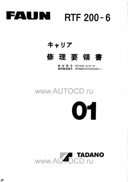 Заводская инструкция по ремонту крана Тадано - Tadano Faun RTF-200-6 содержит подробную информацию о сборке и разборке агрегатов, процедур диагностики, электрические схемы, моменты затяжек и др.
