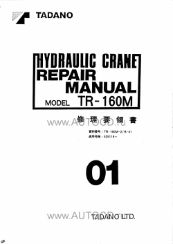 Заводская инструкция по ремонту крана Тадано - Tadano Hydraulic Crane TR-160M-2 содержит подробную информацию о сборке и разборке агрегатов, процедур диагностики, электрические схемы, моменты затяжек и др.