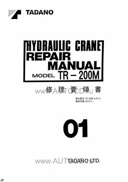 Заводская инструкция по ремонту крана Тадано - Tadano Hydraulic Crane TR-200M-4 содержит подробную информацию о сборке и разборке агрегатов, процедур диагностики, электрические схемы, моменты затяжек и др.