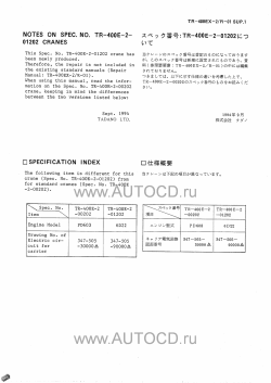 Заводская инструкция по ремонту крана Тадано - Tadano Hydraulic Crane TR-400EX-2 содержит подробную информацию о сборке и разборке агрегатов, процедур диагностики, электрические схемы, моменты затяжек и др.
