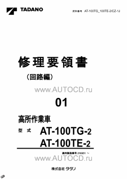 Заводская инструкция по ремонту крана Тадано - Tadano Aerial Platform AT-100TE-2 содержит подробную информацию о сборке и разборке агрегатов, процедур диагностики, электрические схемы, моменты затяжек и др.