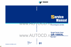 Заводская инструкция по ремонту крана Тадано - Tadano Rough Terrain Crane GR-1000XL-3 содержит подробную информацию о сборке и разборке агрегатов, процедур диагностики, электрические схемы, моменты затяжек и др. Информация доступны на Английском и Японских языках. Если модель поставлялась только на локальный рынок Японии инструкции будут на Японском языке, книга с электрическими и гидравлическими схемами будут на английском.